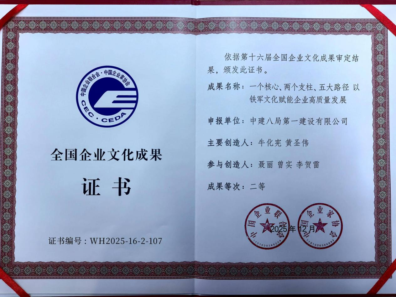 中建八一獲評“第十六屆全國企業(yè)文化成果”二等獎