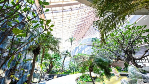 場(chǎng)館內(nèi)部打造約4000平方米的綠植生態(tài),其中,1000平方米溫室雨林館內(nèi)將展出珍稀的新加坡植物,通過傳統(tǒng)建筑語(yǔ)言的現(xiàn)代化構(gòu)建、內(nèi)部空間溫室化、生境營(yíng)建等綠色技術(shù)的綜合應(yīng)用,營(yíng)造一個(gè)低碳、舒適、健康的開放空間。