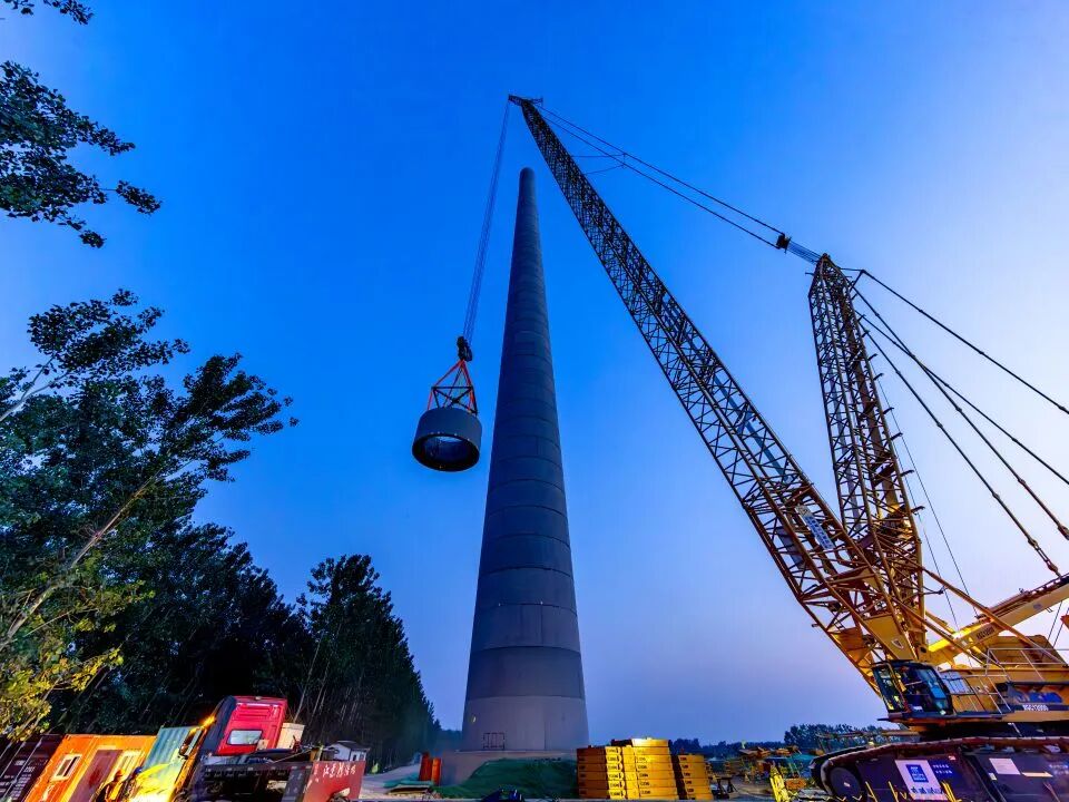 中建八一臨沂市郯城縣TC-1風電項目完成國內(nèi)最高混塔風機吊裝施工